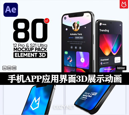 AE模板|手机APP应用界面3D展示动画模板-Awards Package