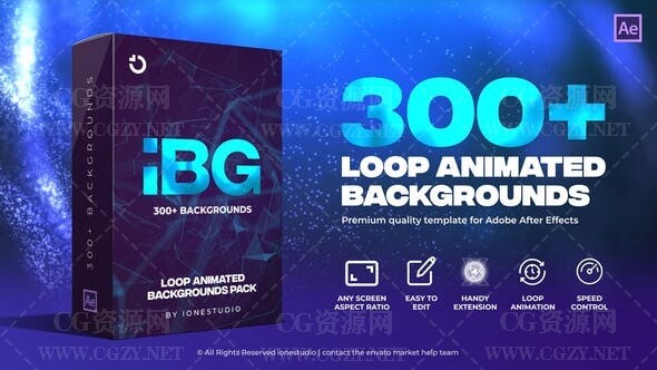 AE/PR脚本|300组抽象霓虹灯粒子背景图案循环动画预设 iBG Loop Backgrounds