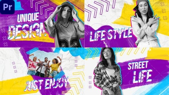时尚潮流嘻哈人物涂鸦文字介绍动画PR模板下载-Fashion Style Opener Mogrt 200