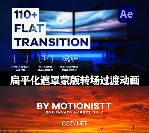 AE模板|110多种扁平化遮罩蒙版转场过渡动画 Flat Transition Pack