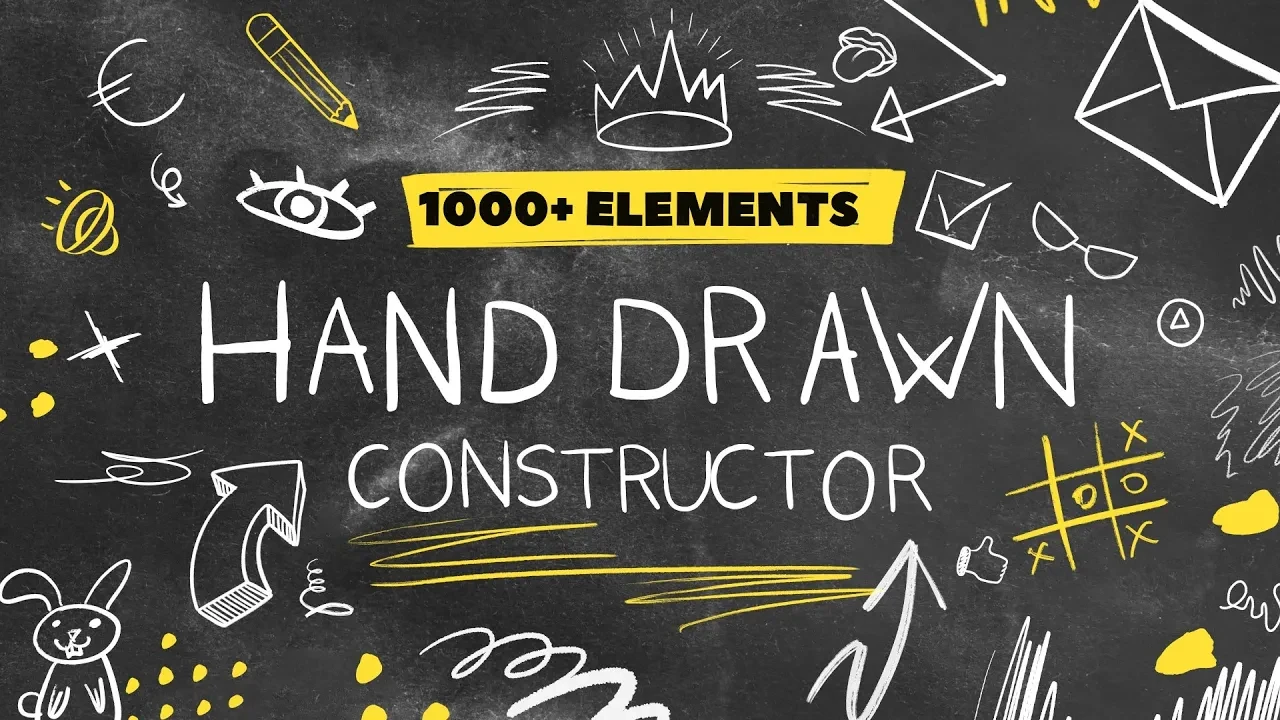 AE脚本|1120个创意手绘涂鸦艺术箭头漫画插画线条标记数字表情符号场景标题背景视觉元素包 AtomX Hand Drawn Constructor