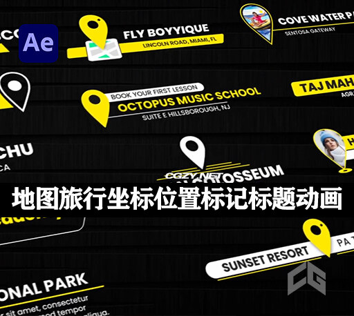 包含12个地图导航坐标位置标记标题动画,适于于旅行视频创作,只需编辑文本、拖放到媒体中并点击渲染即可。需要的小伙伴赶快免费下载!