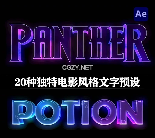 包含20种电影风格文字预设,所有预设均通过基本图形面板可调整,尽管为 2D 文本设计,但呈现出逼真的 3D 效果。