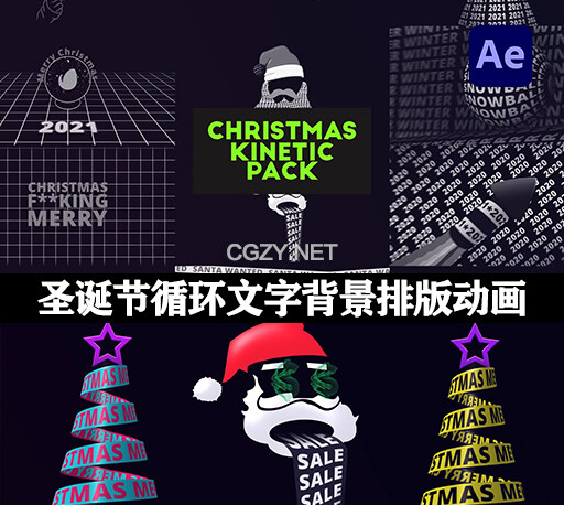 AE模板|20种圣诞节动力学循环文字标题背景排版动画 Christmas Kinetic Pack