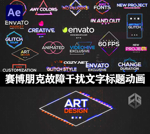 Glitch Titles里面包含20种现代赛博朋克故障干扰文字标题动画模板,全高清分辨率 1920X1080 60fps,无需插件,可使用 After Effects CS5.5 及更高版本进行编辑。喜欢的小伙伴赶快下载吧!
