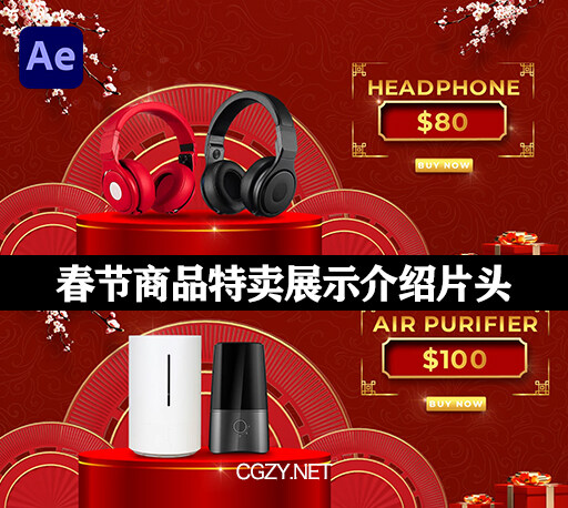 AE模板|2022虎年红色喜庆礼物商品春节特卖展示介绍片头-Chinese New Year Sale