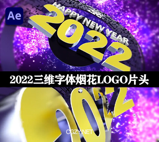 三维2022字体春节跨年烟花爆炸LOGO片头展示AE模板下载-New Year 2022