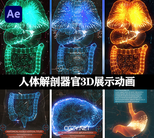 AE模板|科技医疗人体解剖器官文字标题3D展示动画 Anatomical Vertical HUD UI Titles