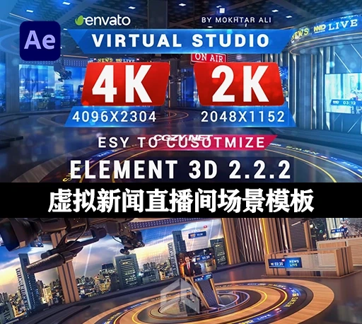 videohive 33077487是一款虚拟3D广播新闻直播间场景AE模板。可用于制作新闻集,新闻播音员,全景,科学发现,体育赛事,脱口秀,虚拟工作室等项目。模板需使用Element 3D v2插件!