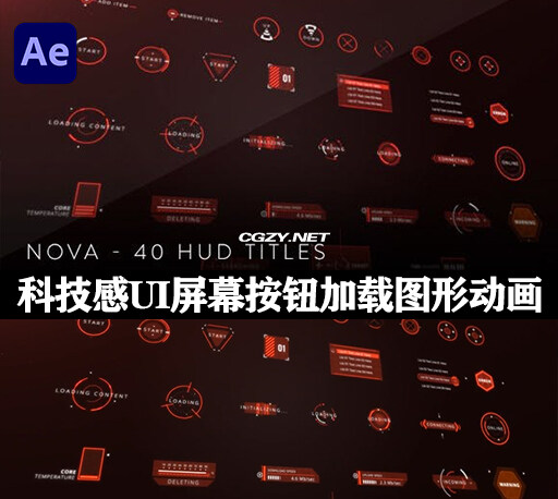 AE模板|40种科技感HUD按钮UI屏幕预加载器图形动画元素 Nova – 40 HUD Titles