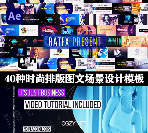 40组图文排版场景设计动画AE模板,轻松更改颜色,包括视频教程。