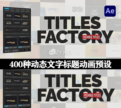 Titles Factory是一款功能强大的After Effects文字动画预设扩展脚本插,内置超过400种精美的标题设计,11大类别(如极简、现代、复古等),支持3种入场动画和3种出场动画,可以自由组合。可以轻松修改文本、颜色、字体和特效,同时调整动画的速度和时长。还集成了高级特效(如反射、光泽、长阴影等),并支持一键应用和调整,使复杂的动画制作变得简单高效。无论是用于片头设计、字幕动画,还是品牌宣传视频,Titles Factory都能帮助您快速制作出引人注目的专业级标题动画!