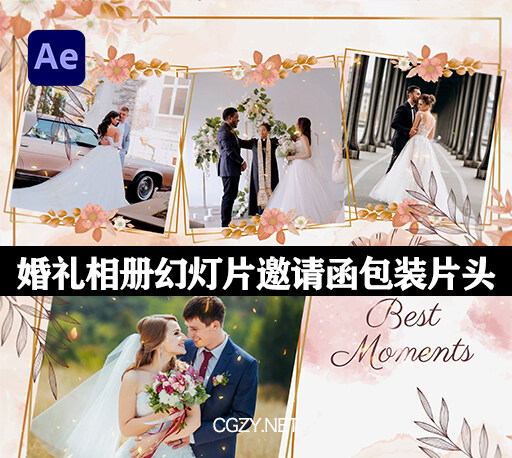 婚礼相册幻灯片邀请函包装片头AE模板下载-Wedding Invitation Slideshow 4K
