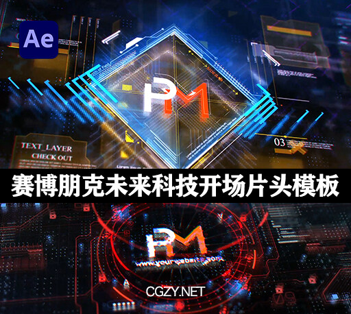 5个赛博朋克LOGO展示未来科技开场片头AE模板下载-Cyberpunk Intros