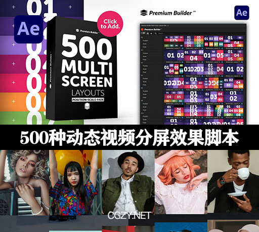 提供500多种视频分屏效果,可以给视频图片等素材制作动态分屏网格排列组合。采用脚本形式,直观能够看到预览效果,点击即可使用。可控制边框宽度倒角、占位符色调控制等,还包括声音效果。