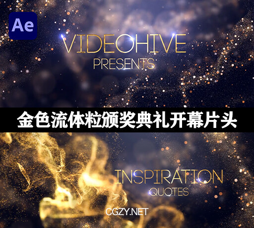 AE模板|金色抽象流体粒颁奖典礼开幕文字标题开场片头-Ceremony Opening Titles