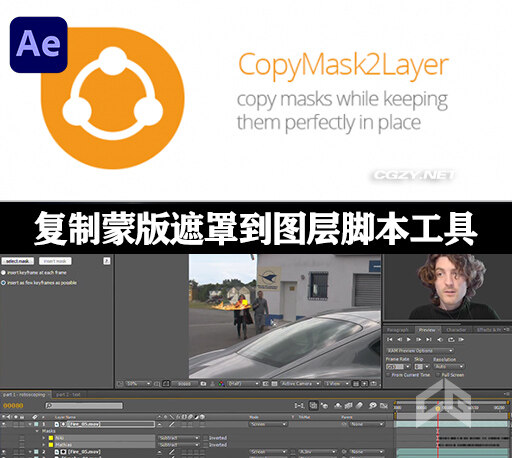当你把一个蒙版遮罩从一图层复制到另一个图层经常改变其位置。CopyMask2Layer可以完美解决这个问题,即使这个图层是运动的或者遮罩有关键帧,CopyMask2Layer适用于任何2D图层。
