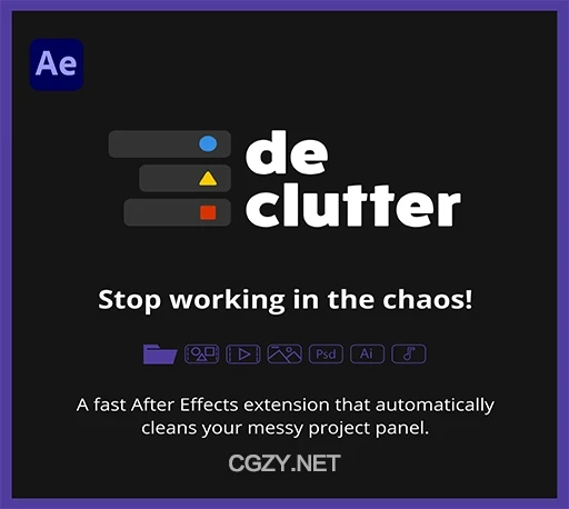 Declutter is an After Effects extension created to organize your project assets into predefined folder structures. You can create and store your own folder structures with their own names, suited to different types of projects or needs. Within each structure, you can customize the parent folders, child folders, folder labels and names, and what type of assets they’re going to store. You can be as perfectionist as you want!