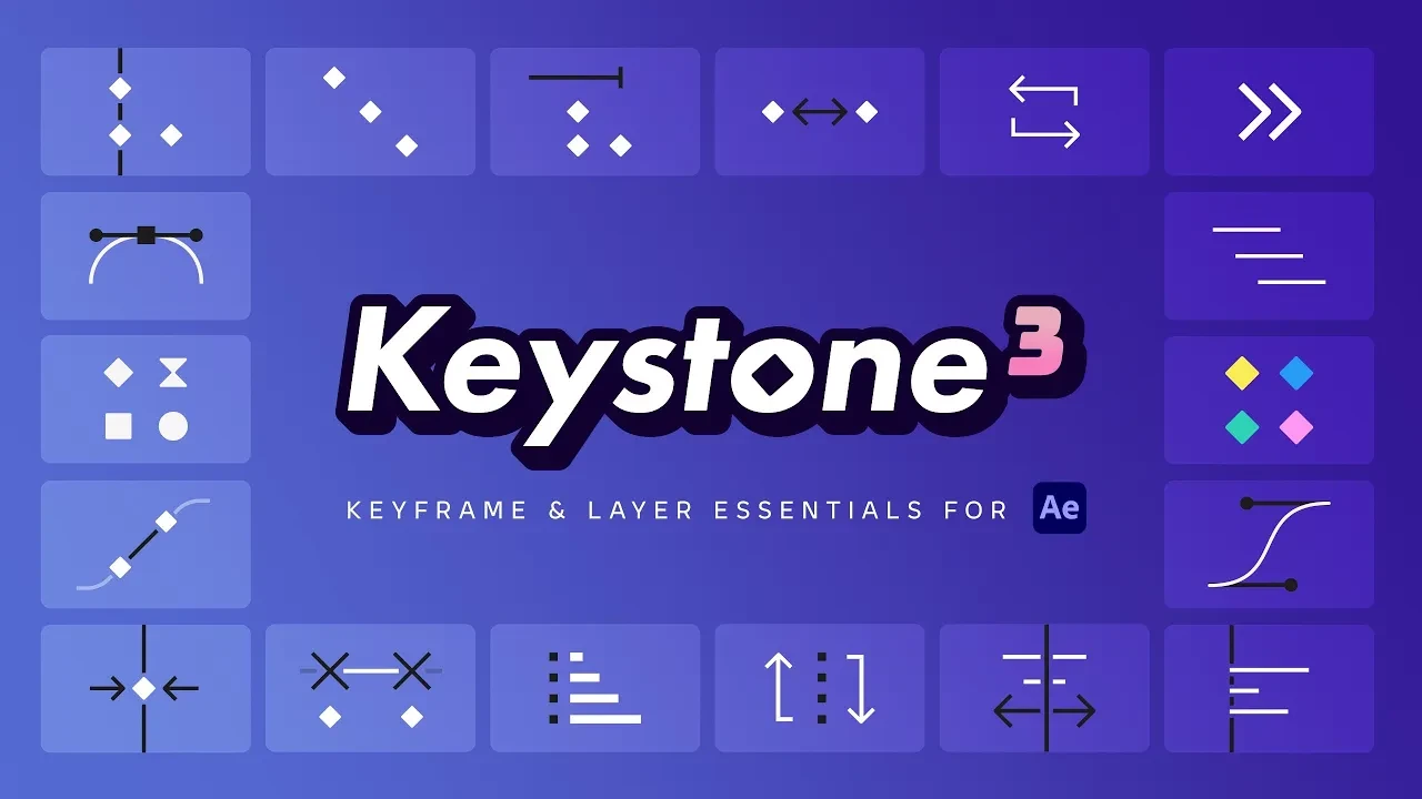 Keystone 3是一款AE扩展脚本,可以对关键帧复制粘贴对齐镜像拉伸调节控制。脚本可以让多个关键帧对齐、翻转、错开、复制、拉伸等等!在After Effects直接使用关键帧,操作它们可能很乏味。借助Keystone脚本基于图标的界面,现在只需点击一下即可完成。