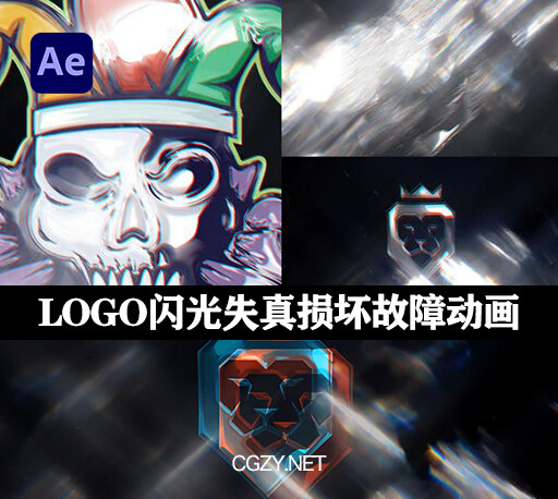 LOGO闪光失真损坏故障动画AE模板下载-Flash Glitch Logo