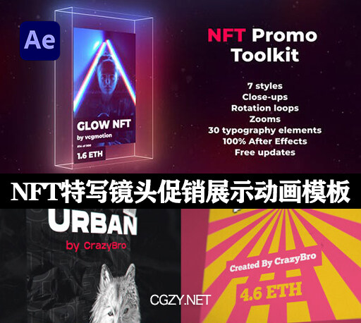 AE模板|NFT特写镜头促销展示动画模板 NFT Promo Toolkit
