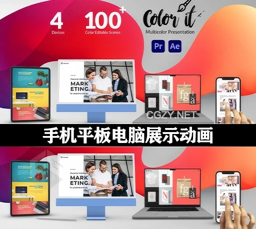 包含100多种现成的台式机 – 笔记本电脑 – 平板电脑和智能手机模型演示场景,可用于展示APP应用程序界面,网站页面。