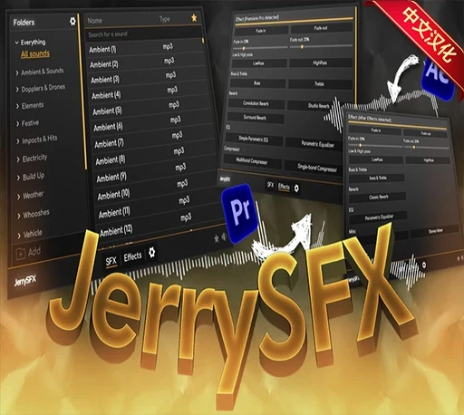JerrySFX是一款为After Effects与Premiere Pro精心打造的音效设计插件,内置超过1250个高质量原创音效,并支持导入自定义素材。通过直观的界面和实时预览功能,你可以快速挑选并应用合适的音效,还可一键调用 AE 或 PR 的内建音频特效如压缩器、EQ、混响等,极大提升剪辑效率。个性化设置界面还包含动态音频可视化、音频循环预览与趣味“跳舞猫”等功能,让创作更高效也更有趣!