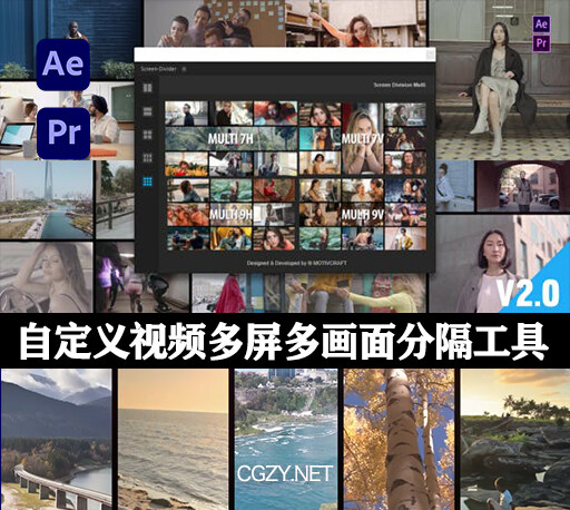 AE脚本+PR模板|自定义视频多屏多画面分隔工具-Multi Screen Split Divider Extension V2.0
