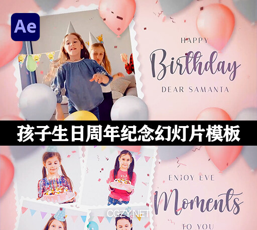 AE模板|庆祝孩子生日周年纪念幻灯片模板 Samantha Birthday Slideshow