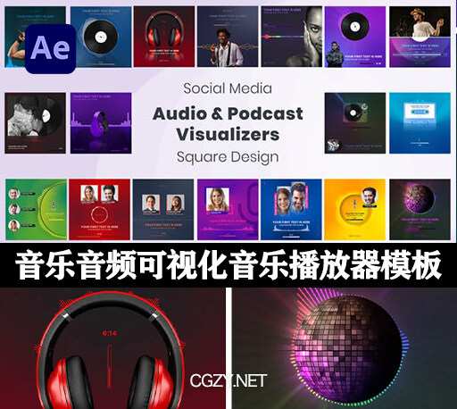 AE模板|音乐音频可视化音乐播放器模板-Social Media Audio Visualizer