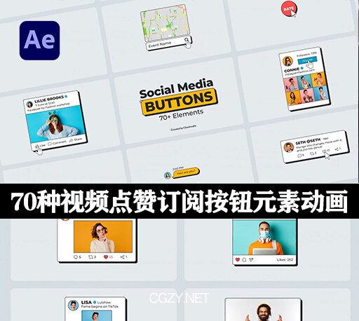 AE模板|70种视频点赞订阅按钮元素动画模板-Social Media Buttons Pack