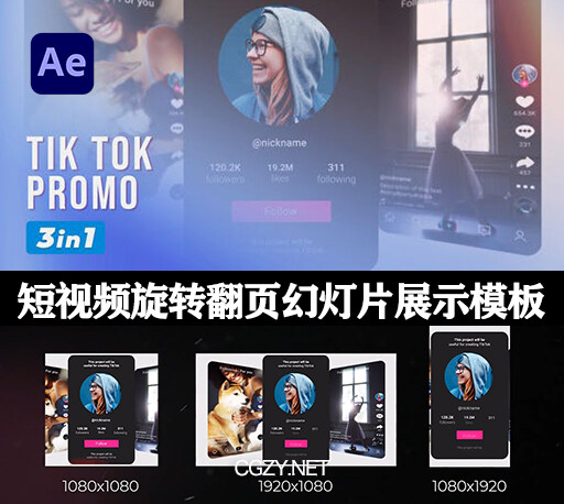 AE模板|短视频旋转翻页幻灯片动画展示模板 TikTok Promo
