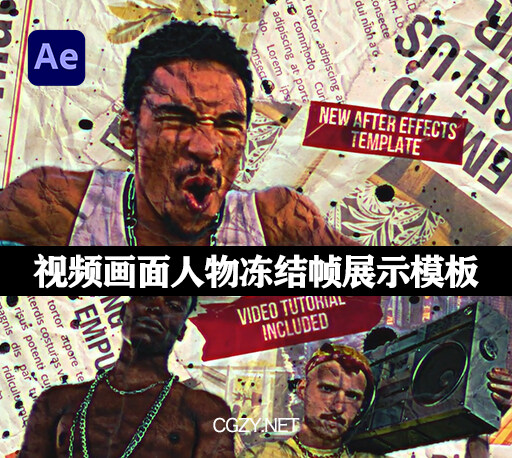 AE模板|视频画面人物冻结帧展示VHS效果动画模板 VHS Urban Freeze Frame