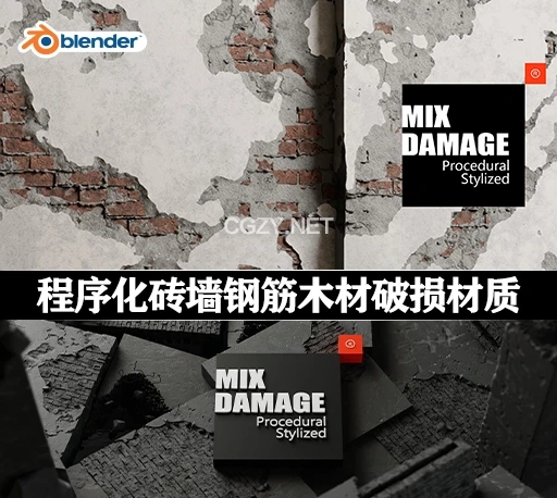 Mix Damage是一款Blender损坏插件,提供24种程序化破损效果,轻松为3D模型添加砖墙、钢筋、木材等真实的破损细节。通过简单的操作即可混合多种破损类型,打造更加逼真的效果。还支持添加内部结构破坏,如砖块纹理、破碎表面、金属损坏等,极大提升模型的真实感。