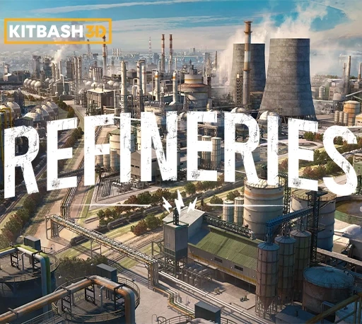 KitBash3D的Refineries是一个重工业工厂里各种设备建筑3D模型,比如烟囱、炼油厂、反应堆建筑、石油井架、冷却塔、管道、天然气储存装置,发电厂等,每个模型都十分精细。适合用于构建大型工业景观或增强城市环境。包含2K分辨率贴图材质,Blender/3DS MAX格式