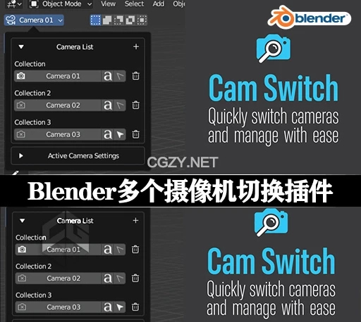 Cam Switch是一款摄像机切换插件。更高效和有组织地处理多个摄像机。该插件通过添加一个弹出式面板,让用户可以轻松选择、重命名和删除摄像机,同时还提供了其他功能,如添加新摄像机并调整面板宽度等。Cam Switch的设计旨在简化用户在Blender中处理多个摄像机的工作流程,使其更快速、更流畅。
