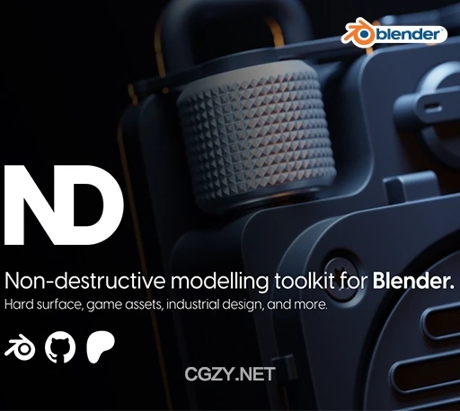 ND (short for non-destructive) is a Blender addon that provides many workflow enhancements, tools, operations, and generators tailored specifically for non-destructive 3D modelling.