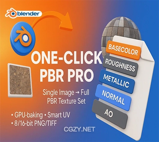 One-Click PBR Pro主要功能是把一张普通图片一键转换成完整的PBR材质(包括贴图、节点和映射),并支持实时参数调整和 高质量贴图烘焙。适合做游戏、建筑可视化、产品渲染和 VFX 等需要真实材质的工作流程。
