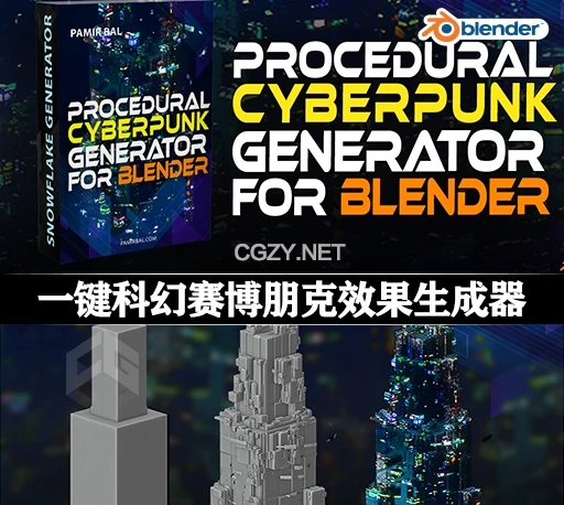 Blender程序化一键科幻赛博朋克效果生成器,您可以使用此Blender Modifier轻松生成不同的科幻城市。