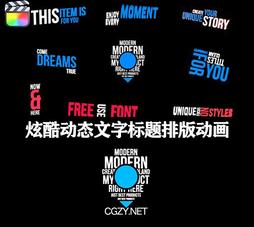 FCPX插件|13个炫酷动态文字标题排版动画模板 支持M1 Kinetic Typography