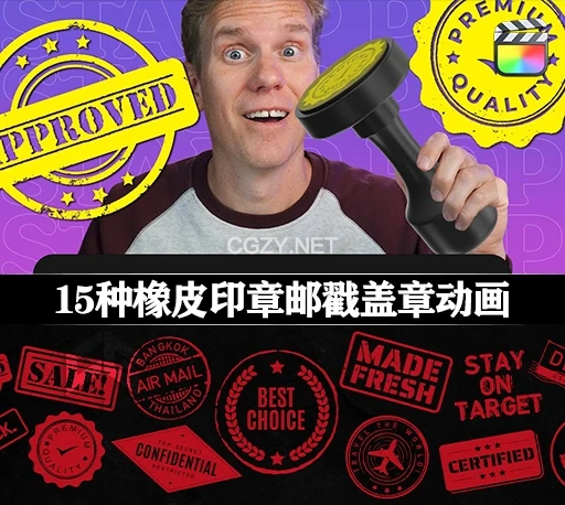 插件提供了15个橡皮图章标题,让你的视频呈现经典的纸上印章效果。包含圆形、矩形和混合风格的预设。