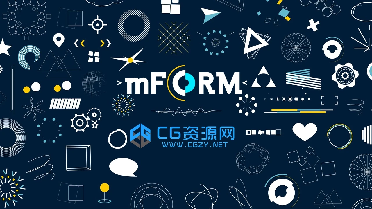 mForm是一套由MotionVFX出品的视频元素,包含150组抽象小图形动画,如:线条,爱心,线条爆炸,圆形,齿轮,指针,矩形,三角形,对话框气泡,星星等,可以编辑颜色,位置,大小,旋转等多种参数,拖拽即可使用。
