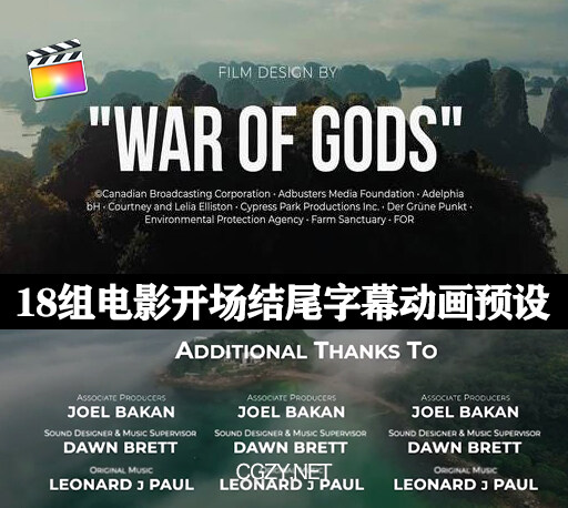 FCPX插件|18组电影开场结尾滚动字幕文字标题动画预设 Final credits
