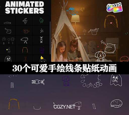 30个FCPX卡通可爱手绘线条贴纸动画插件-Cartoon Lyric Stroke Animations