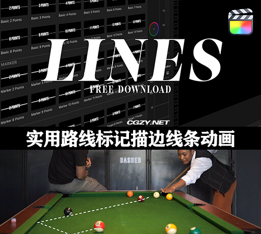 FCPX插件|39种实用路线标记描边线条动画 Lines Template