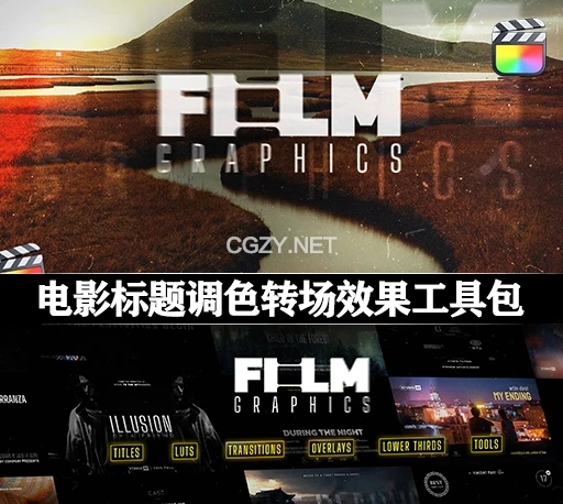 FCPX插件|电影标题调色转场效果工具包 Film Graphics
