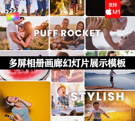 FCPX插件|多屏相册画廊幻灯片展示模板 Multi Screen Opener