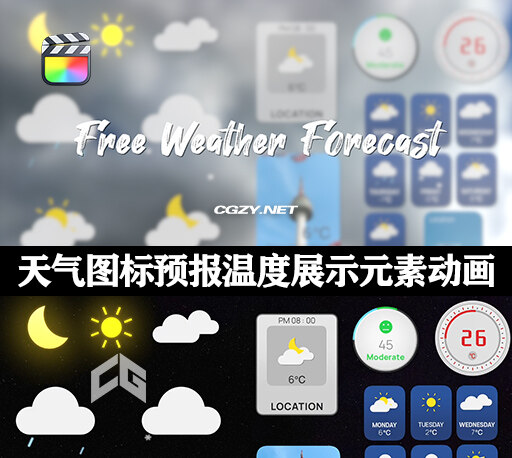 FCPX插件|Vlog常用天气图标预报温度展示元素面板动画 Weather Forecast Pack