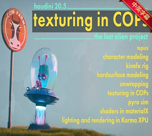 中英文字幕-Houdini卡通外星飞船建模&COPs纹理灯光渲染全流程教程 Houdini – Texturing in cops – the lost alien project