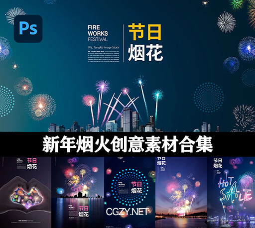 PS模板|14个新年烟火创意节日烟花素材合集下载
